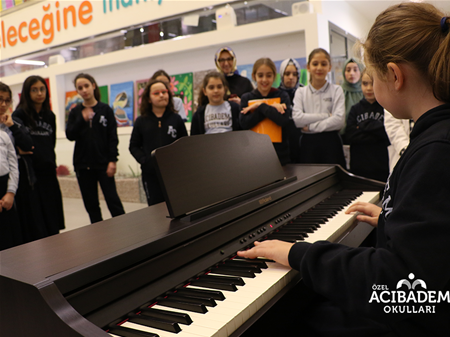 Atrium etkinliği ile enstrümanlarının başına geçen öğrencilerimiz, tüm arkadaşlarının önünde perform ...