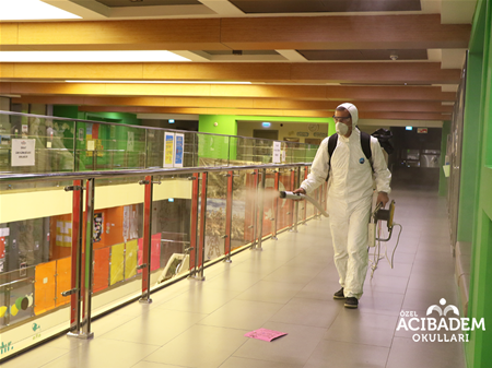 Acıbadem Okulları Dezenfekte Çalışması Her ay düzenli olarak kurumlarımızda yapılan dezenfektan çalı ...