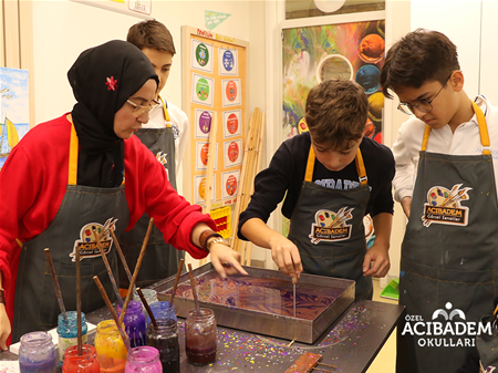 Ortaokul öğrencilerimiz Görsel Sanatlar dersinde geleneksel sanatlarımızdan Ebru sanatını tanıdı ve ...